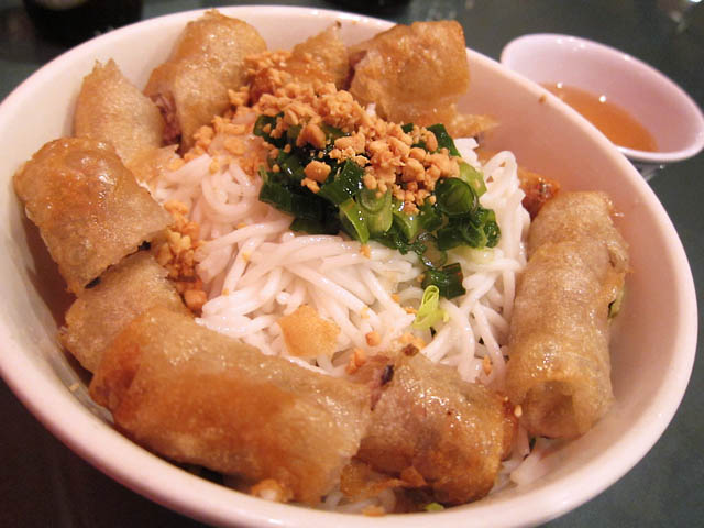 We left and Matt & Marce took me to Thái Son for me to food blog. We weren’t even hungry. How nice of them. We got some summer rolls and a bowl of Bun Cha Gio Thit Nuong (Spring Rolls & Grilled Pork W. Lettuce On Rice Vermicelli). Affordable and good Vietnamese food. I likee the fish sauce.