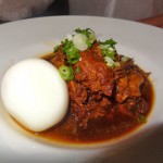 We headed off to Williamsburg to meet Elissa and co. I don’t remember what we were doing, but we ended up at Supercore on Bedford and drank sake. Elissa ordered the Beni-Tori with rice (simmered chicken in dark soy sauce, ginger, onion, sugar with soft boiled egg). It tasted pretty good.